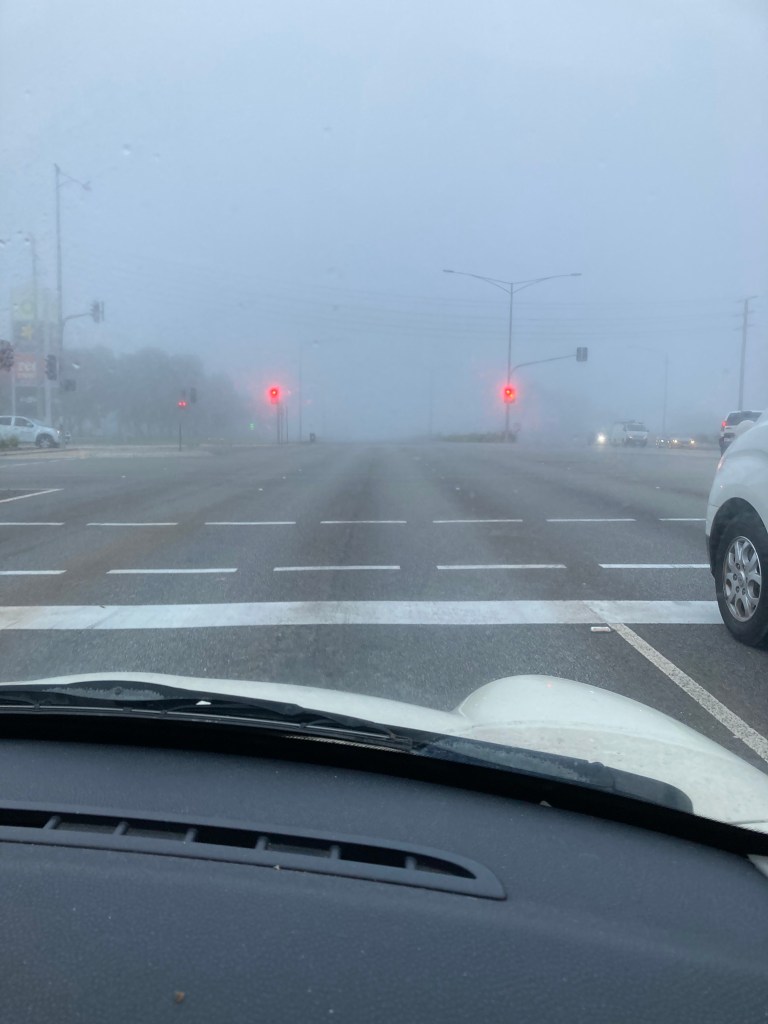 Today, in many ways, has been a very strange day. I feel like I have not got started, like I have been chasing my own, for most of the day. The picture above is from the drive to church – it was so foggy that I had to really concentrate.