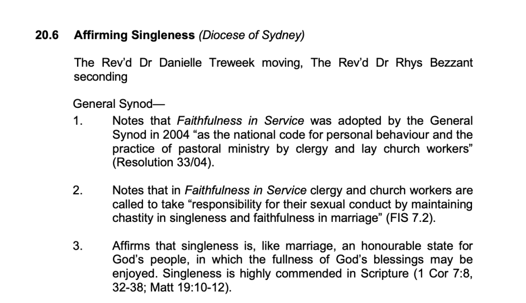 That being said, here is a motion to be discussed at the Anglican Church in Australia General Synod: